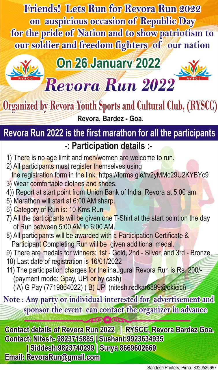 The first marathon for all the participants organized by Revora Youth Sports and Cultural Club (RYSCC), Revora, Bardez, Goa