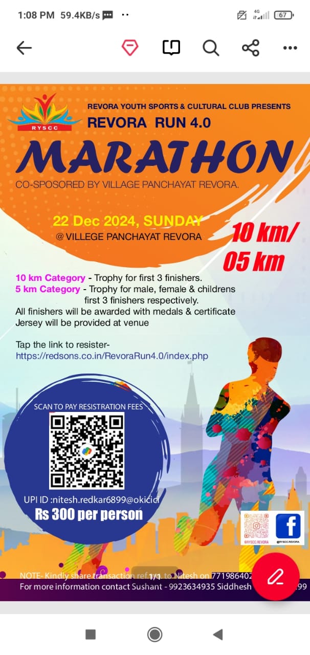 The Fourth Run organized by Revora Youth Sports and Cultural Club (RYSCC), Revora, Bardez, Goa - Open to ALL